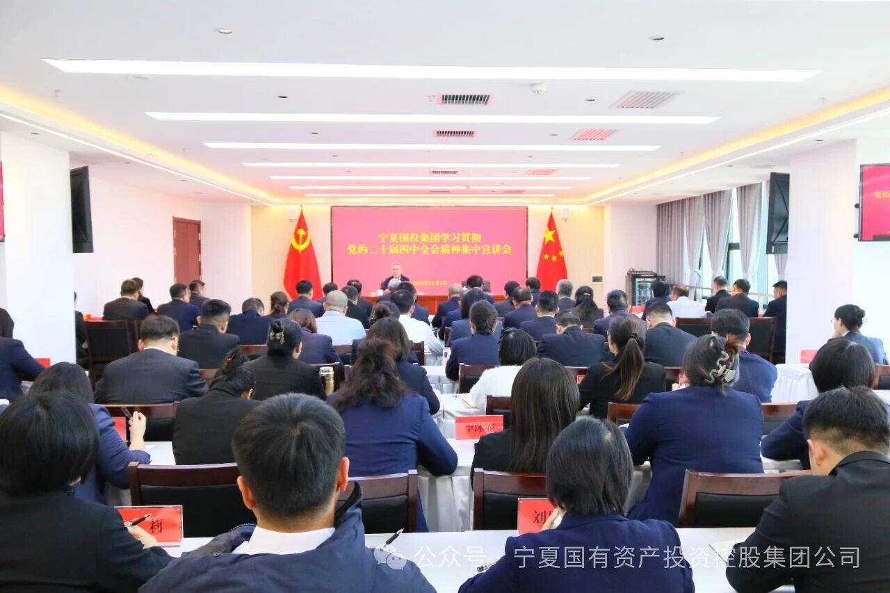 为推动学习贯彻党的二十届四中全会精神走深走实,12月2日,宁夏国投集团召开学习贯彻党的二十届四中全会精神专题宣讲会。自治区宣讲团成员、自治区商务厅党组书记、厅长戴培吉作专题宣讲。集团公司党委书记、董事长杨舵主持会议。