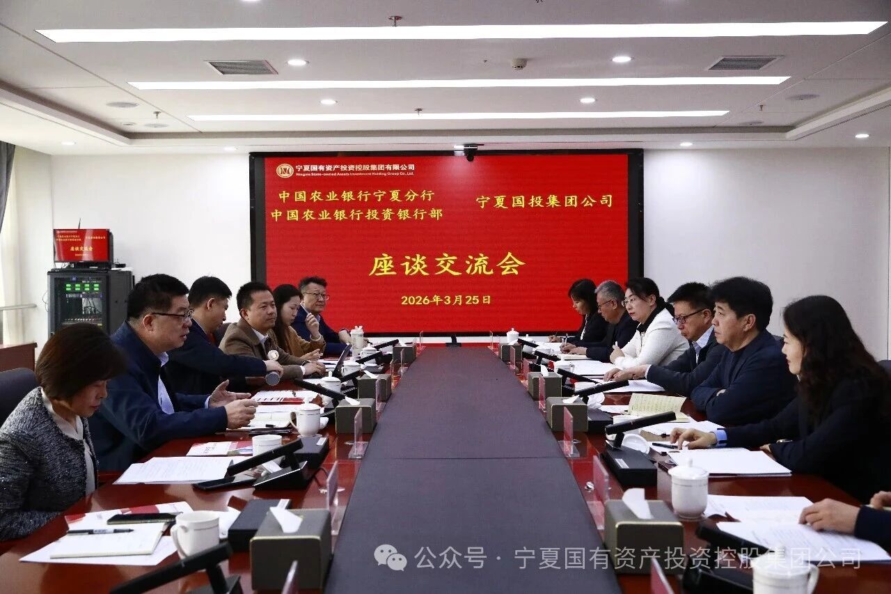 3月25日上午,中国农业银行宁夏分行行长王城英一行到访宁夏国投集团。双方围绕基金业务、资产管理、担保业务、股权投资等领域多元化合作进行了深入座谈交流。中国农业银行投资银行部总裁石龙,宁夏国投集团党委书记、董事长杨舵出席座谈交流会。