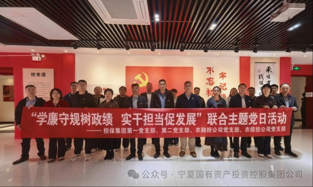 近日,宁夏国投集团下属担保集团和农融担公司联合党总支联合农综投公司党支部,组织党员前往贺兰县廉政警示教育基地、金贵镇廉洁文化体验室,开展“学廉守规树政绩 实干担当促发展”主题党日活动。