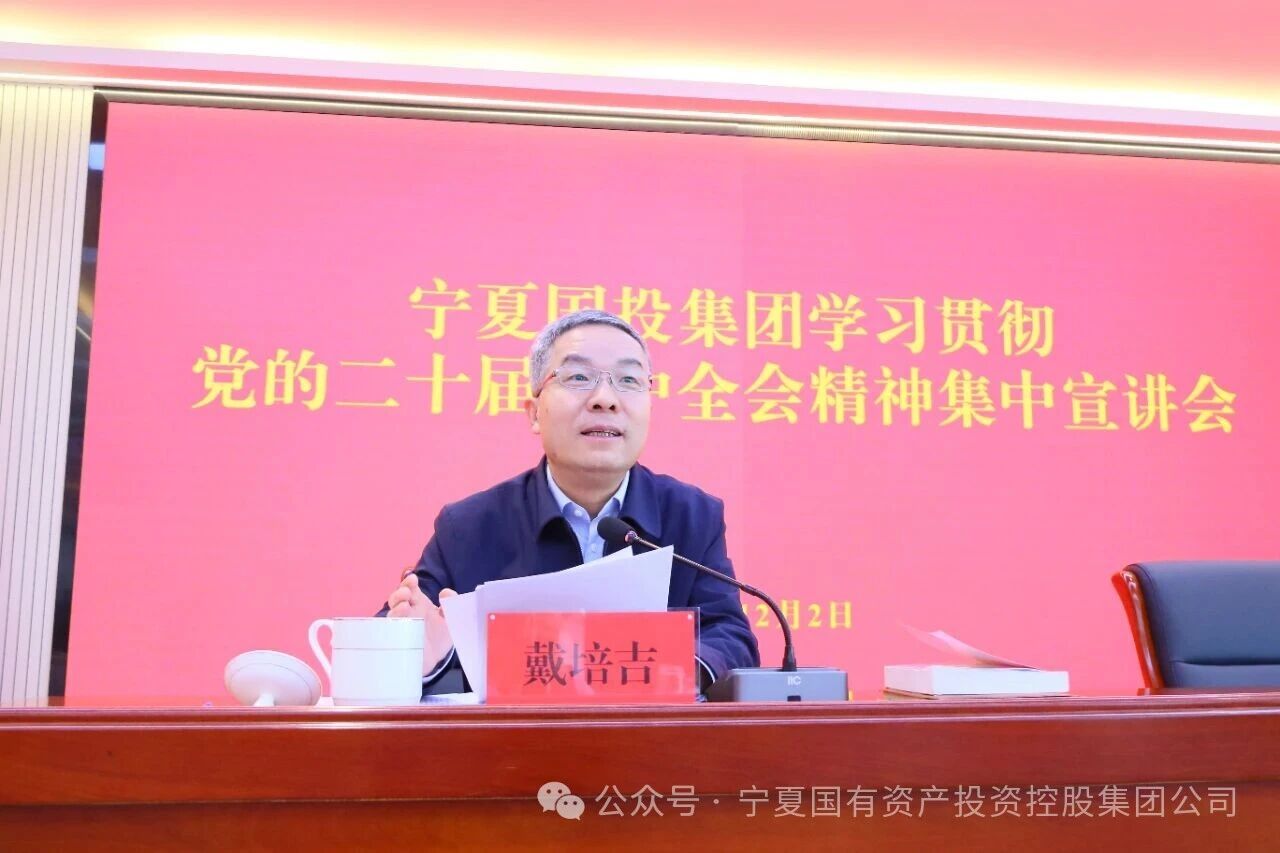 为推动学习贯彻党的二十届四中全会精神走深走实,12月2日,宁夏国投集团召开学习贯彻党的二十届四中全会精神专题宣讲会。自治区宣讲团成员、自治区商务厅党组书记、厅长戴培吉作专题宣讲。集团公司党委书记、董事长杨舵主持会议。