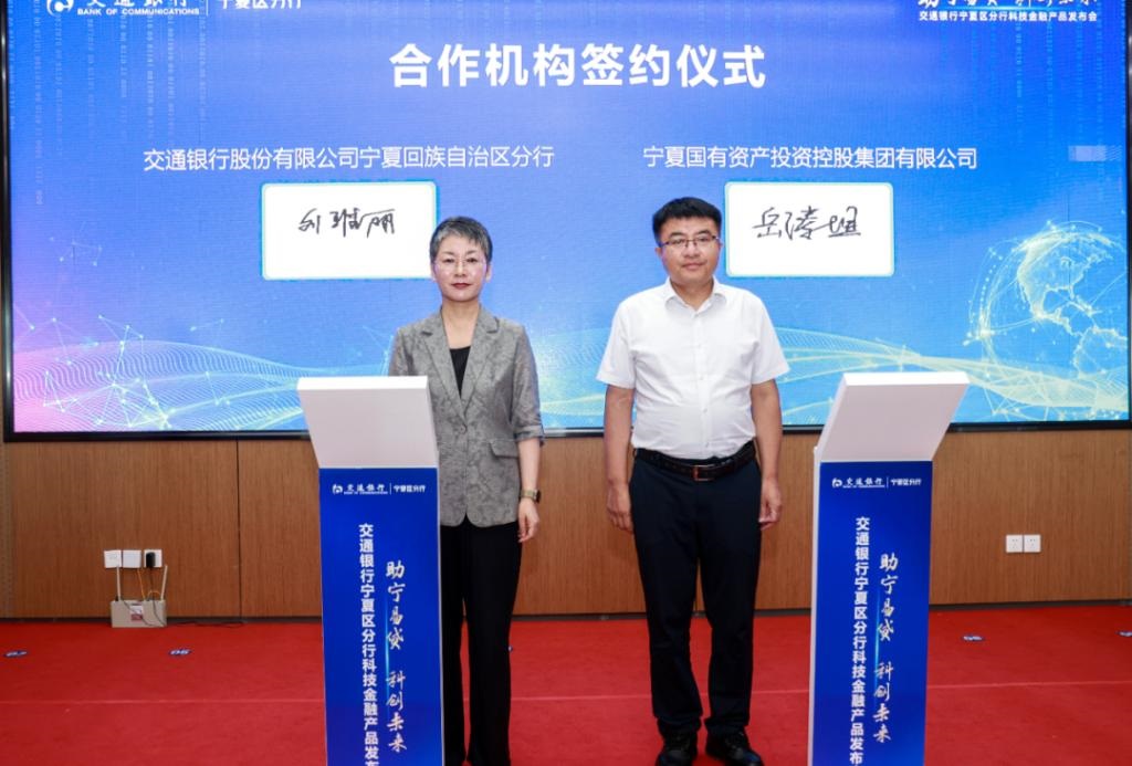 8月8日,交通银行宁夏分行在银川市举办科技金融产品发布会。活动现场,宁夏国投集团与交通银行宁夏分行签署合作协议,标志着双方合作进入新阶段。宁夏国投集团党委委员、副总经理岳臻煜与交通银行宁夏分行副行长刘雅丽代表双方签约。根据协议,双方将在基金合作、资产管理、银担联动、征信数据等重点领域深化协同合作。