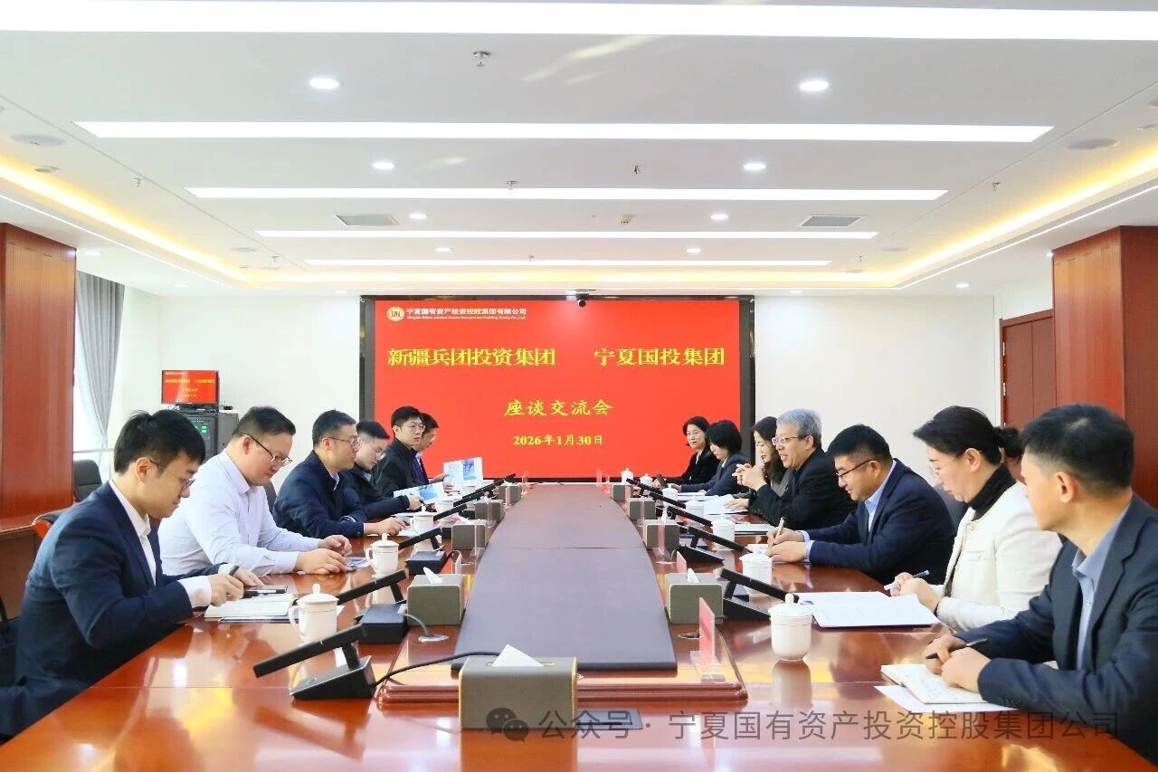 1月30日,新疆生产建设兵团投资公司党委副书记、总经理马飞一行到访宁夏国投集团,就进一步深化双方合作座谈交流。宁夏国投集团党委副书记、总经理张侃,党委委员、副总经理岳臻煜,财务总监刘娟参加座谈。