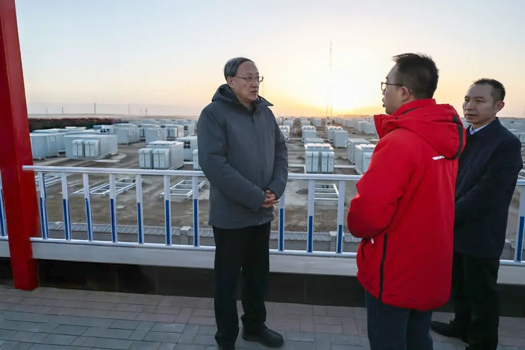 李邑飞在同心县石狮镇,调研新型镍氢混合共享储能示范项目建设情况。